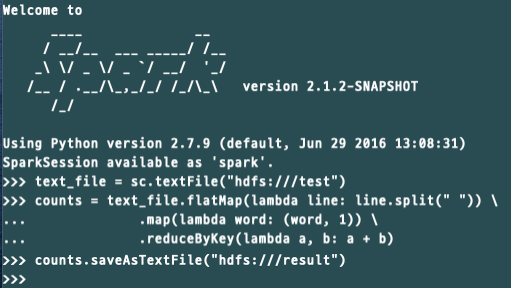 counts = text_file.flatMap(lambda line: line.split(" ")) \