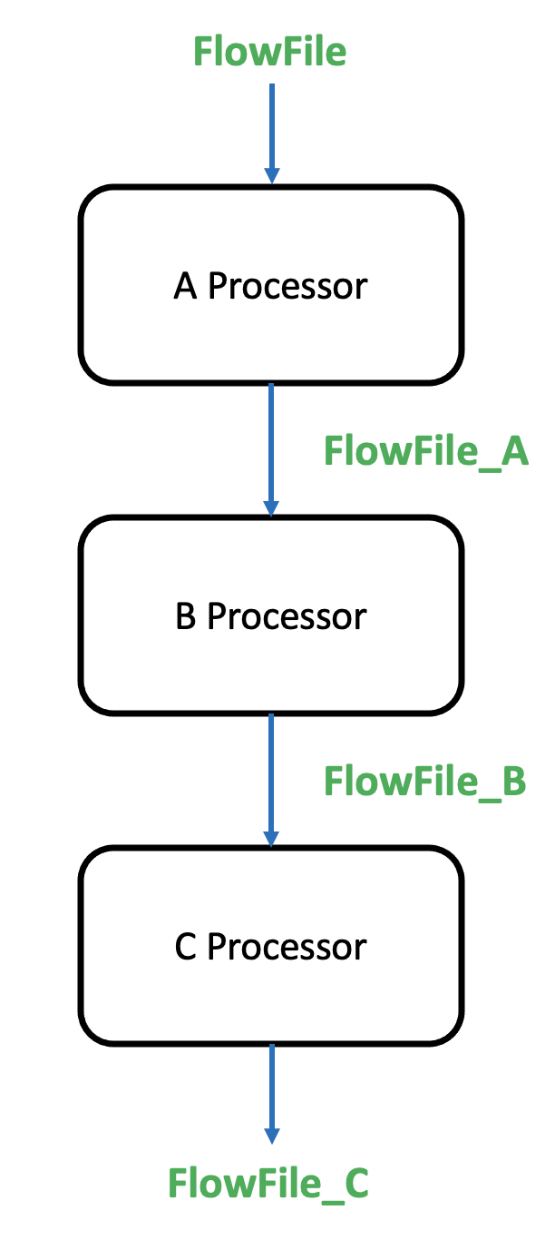 NiFi에서 사용하는 데이터 단위로써 파일명과 고유의 UUID를 가지며 추가적으로 attribute와 content들로 이루어져 있습니다. 이 때 attribute는 쉽게 말해 변수, content는 해당 파일의 내용이라고 생각하면 됩니다. FlowFile이 이동하면서 attribute를 추가하거나 수정할 수 있고 이 값들을 통해서 분기, 통합, 필터 등 다양한 전처리를 할 수 있습니다.