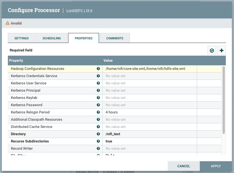 - ListHDFS processor