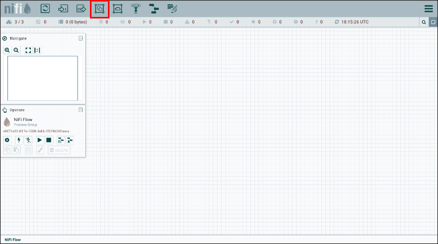 우선 이번글에서 진행할 과정은 HDFS에 저장되어 있는 데이터를 3개 노드에 분산 저장하는 것입니다. 이 과정을 위해서 ListHDFS, FetchHDFS, PutFile을 주요 Processor로 이용할 계획입니다. 이전 글에서처럼 NiFi 서비스를 실행 후 URL에 접속하면 아래와 같이 비어있는 템플릿이 보입니다.