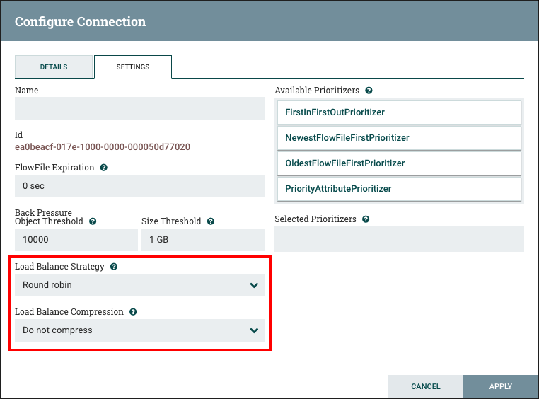 이때 가장 중요한 설정 값으로써 ListSFTP와 FetchSFTP를 연결해주는 Queue의 설정 값으로 "Load Balance Strategy" 값에 "Round robin"을 선택해줍니다.