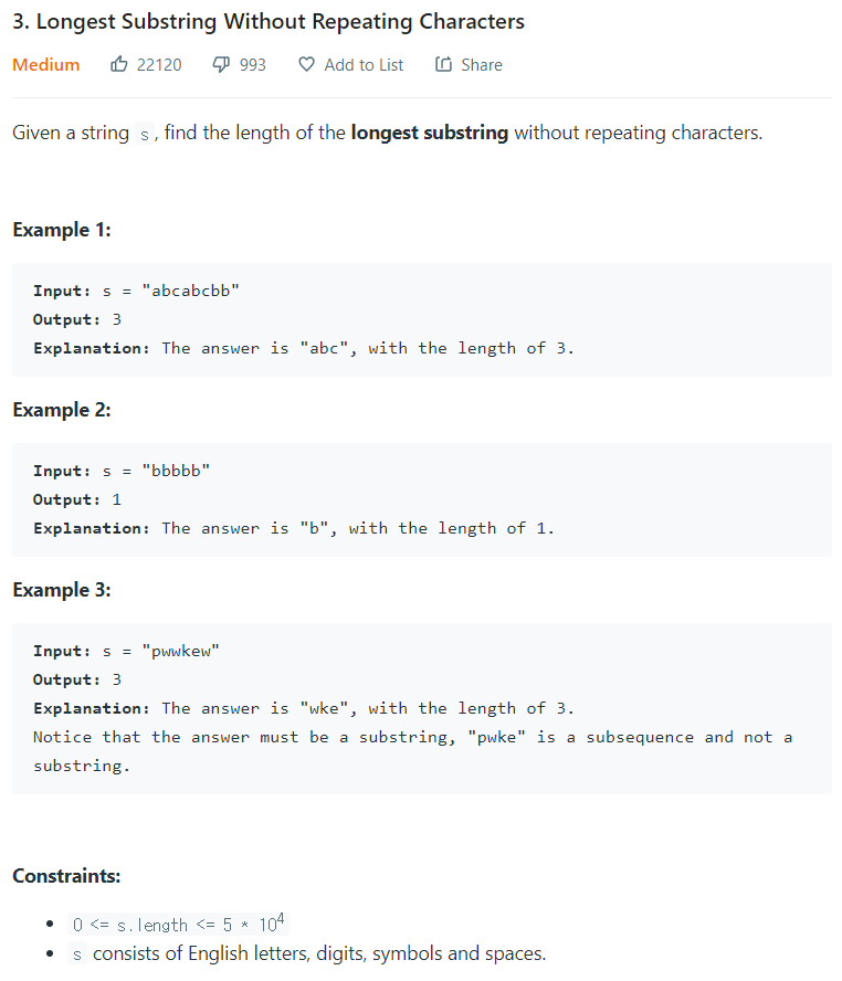 https://leetcode.com/problems/longest-substring-without-repeating-characters/
