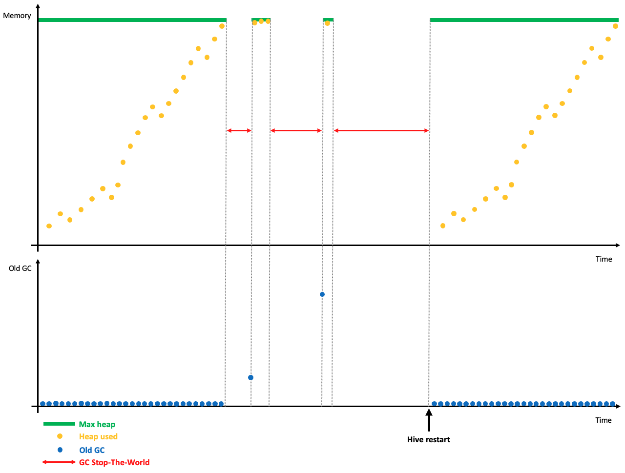 - 결국 Metastore의 heap memory가 빠르게 증가해 full이 되면, Old GC 발생으로 Metastore가 동작 X