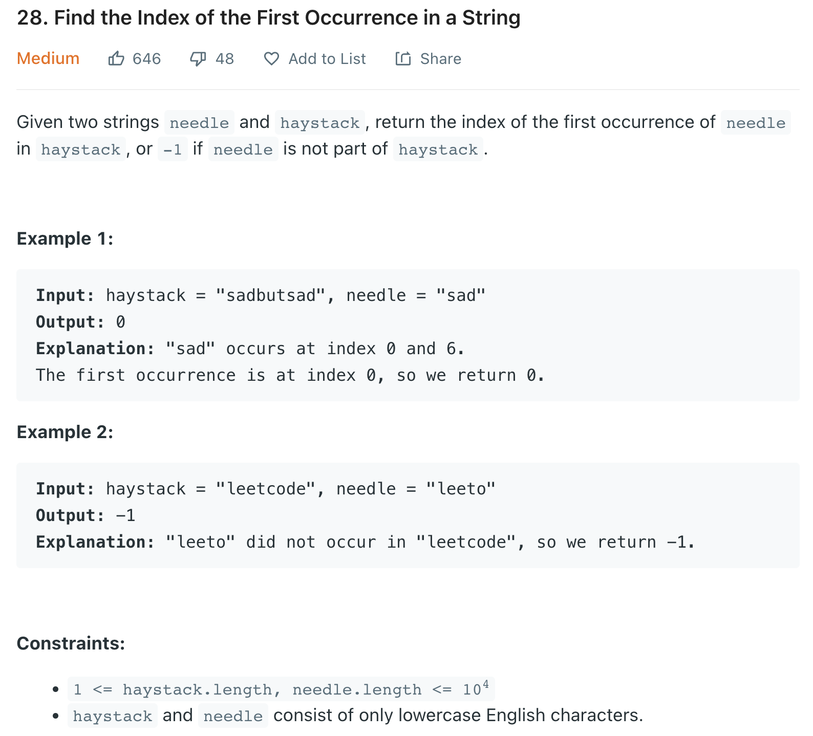 https://leetcode.com/problems/find-the-index-of-the-first-occurrence-in-a-string/