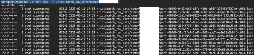 이전 글에서 Match 데이터를 저장한 HDFS 경로는 "/riot/match_raw_data" 였습니다. 하지만 데이터가 계속해서 쌓이면서 성능의 이슈를 생각한다면 Hive 테이블의 partition이 필요할 것입니다. 그래서 닉네임을 기준으로 partition을 구분하겠습니다.